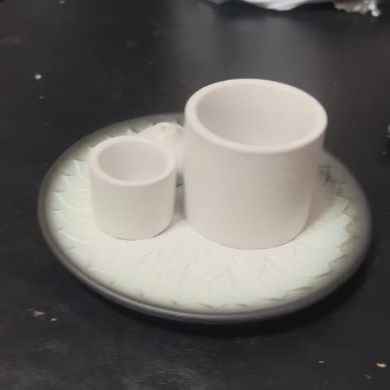 Black and White 4-in-1 Ceramic Burner Tray - Multi-Use Incense Burner, Use for Home Decor, Yoga, Meditation, Home Decoration. Holds Sage, small candle and incense stick